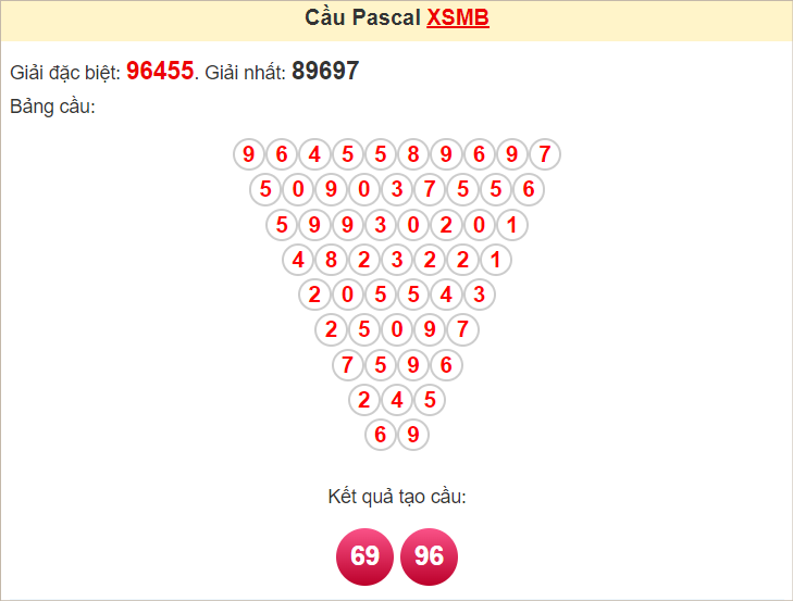 Kết quả từ soi cầu Pascale là cặp số may mắn: 69 96