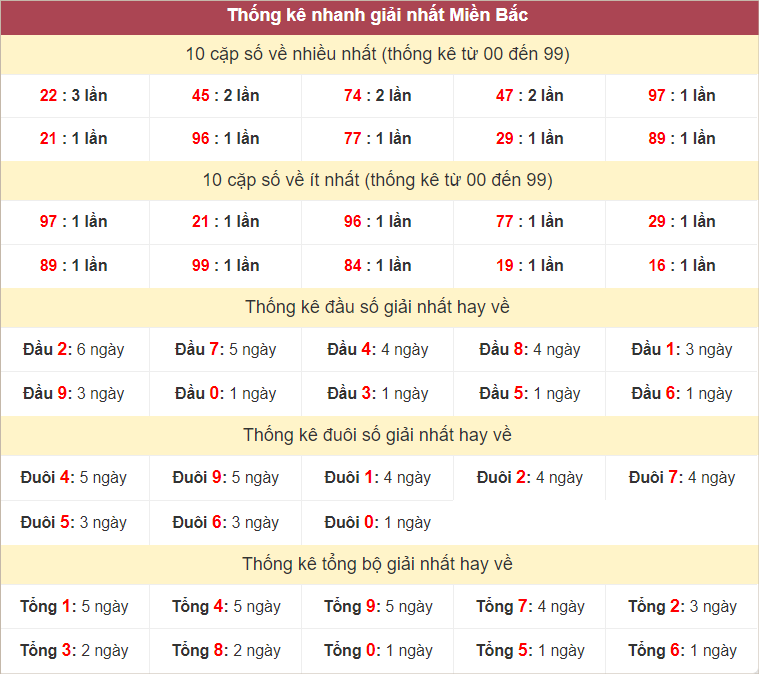 Thống kê hai số cuối giải đặc biệt miền Bắc ngày 25/7