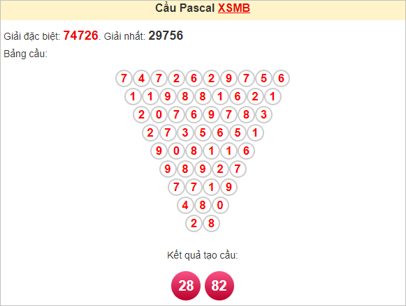 Kết quả từ soi cầu Pascale là cặp số may mắn: 28 82