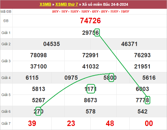 Xem lại bảng KQXSMB ngày 24-8-2024 hôm qua
