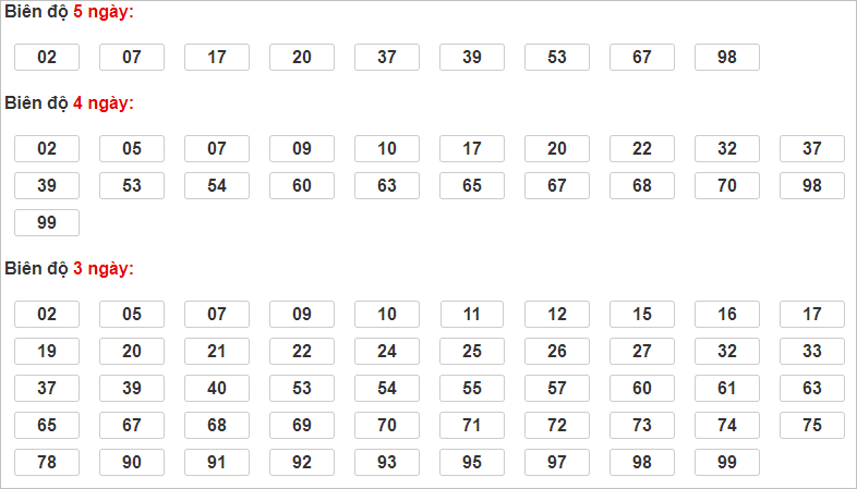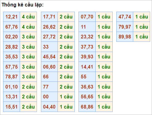 Cặp lô 02 (vị trí ghép cầu 22-44), 07, 17, 20, 37, 39, 53, 67, 98