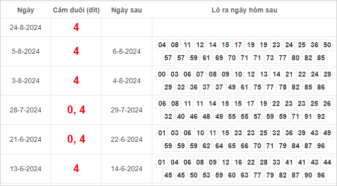 Dàn lô hôm nay miền Bắc bất bại ngày 25/8/2024