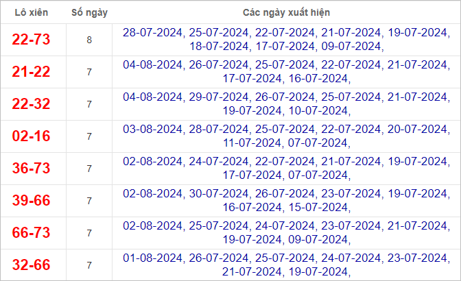 Cặp lô 17, 27, 45 có độ dài 3 ngày.