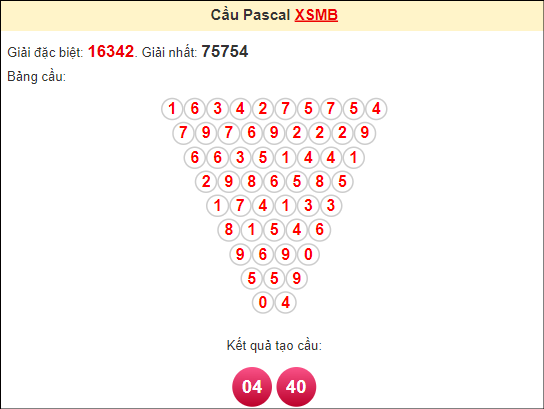 Kết quả từ soi cầu Pascale là cặp số may mắn: 04 40