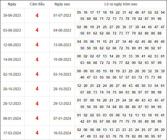 - Bạc nhớ đầu câm 4, dự báo khả năng cao hôm nay sẽ có lô 40 – 44