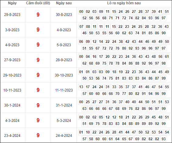 - Xuất hiện đuôi lô câm 9, hôm sau đánh ngay con 19 – 29