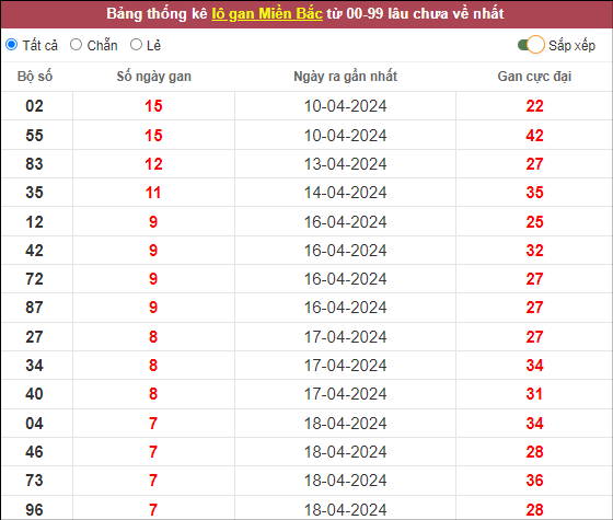 ⭐️Thống kê lô gan XSMB lâu ra nhất: 02 – 55 – 83 – 35 – 12