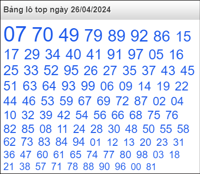 Dàn lô hôm nay miền Bắc bất bại ngày 26/4/2024