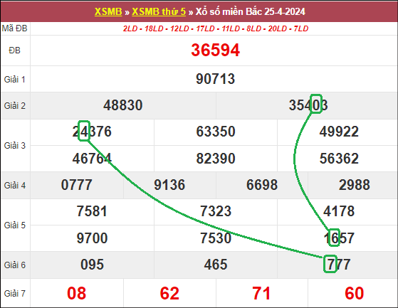 Xem lại bảng KQXSMB ngày 25/4/2024 hôm qua