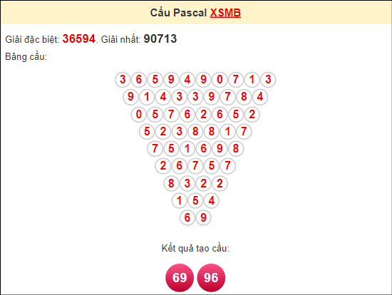 Kết quả từ soi cầu Pascale là cặp số may mắn: 69 96