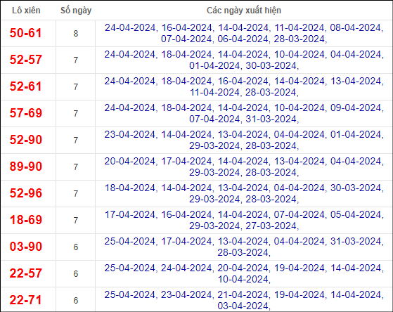 Cầu lô chạy 7 ngày qua (cầu dài nhất)