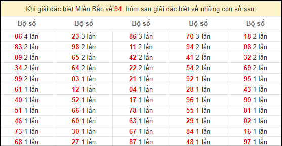 - Giải ĐB hôm qua về 94, nay đánh con gì thắng lớn? 82 – 28