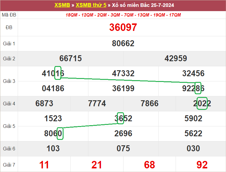 Xem lại bảng KQXSMB ngày 25-7-2024 hôm qua