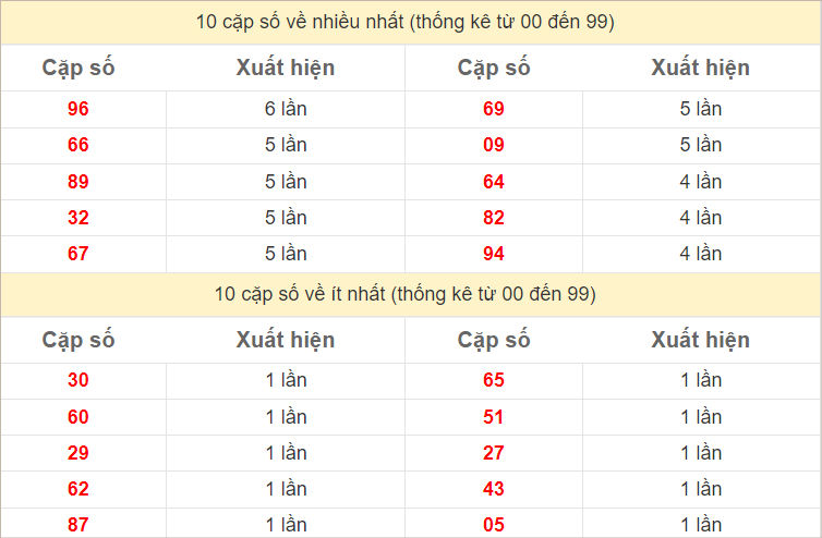 ⭐️ Thống kê tần suất lô về nhiều trong 30 ngày qua: 59, 66 (16 lần), 76, 89 (15 lần), 22, 73 (14 lần), 23, 52 (13 lần)