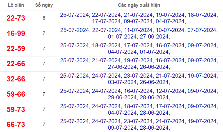 THỐNG KÊ LÔ TÔ KẾT QUẢ XSMB NGÀY 25-7-2024