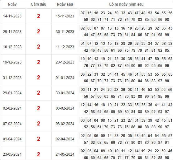 Soi cầu lô 2 nháy ngày 27/5/2024 hôm nay: