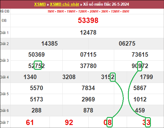 Xem lại bảng KQXSMB ngày 26/5/2024 hôm qua