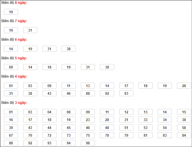 Cặp lô 53, 61, 69, 73 có độ dài 3 ngày