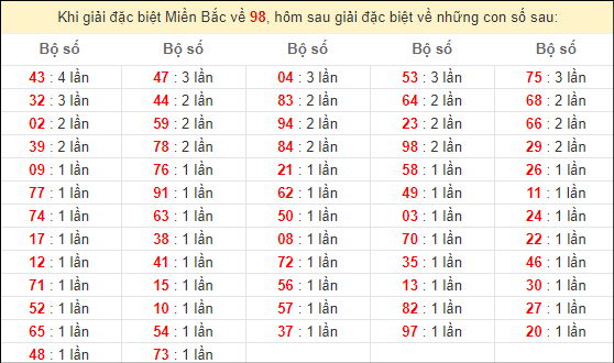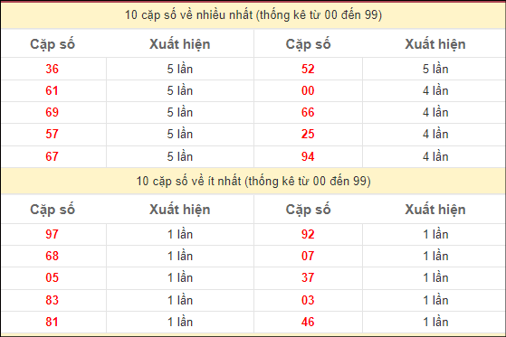 Thống kê hai số cuối giải đặc biệt miền Bắc ngày 27/5