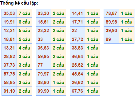Cầu lô chạy 8 ngày qua (cầu dài nhất)