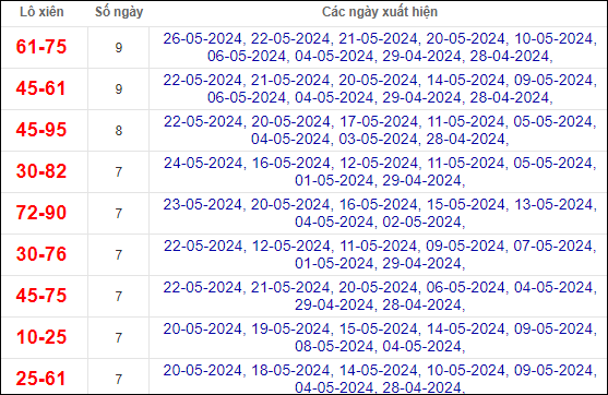 Dàn lô hôm nay miền Bắc bất bại ngày 27/5/2024