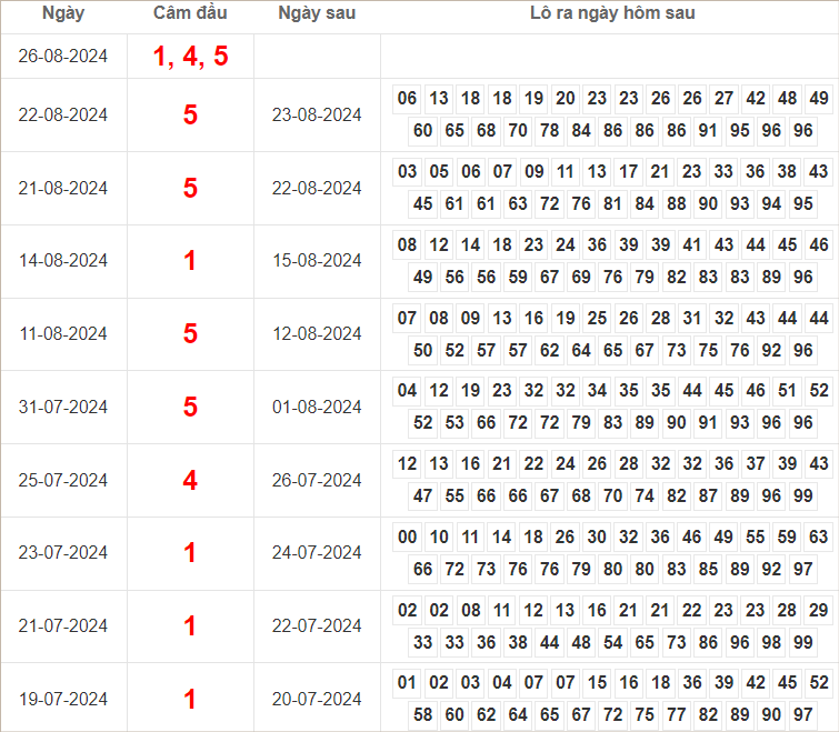 Dàn lô hôm nay miền Bắc bất bại ngày 27/8/2024
