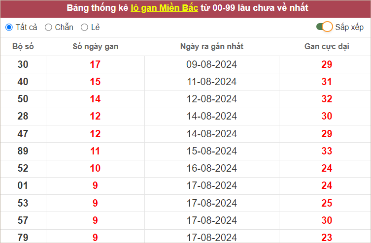 ⭐️Thống kê lô gan MB lâu ra nhất: 30 – 40 – 50 – 28 – 47