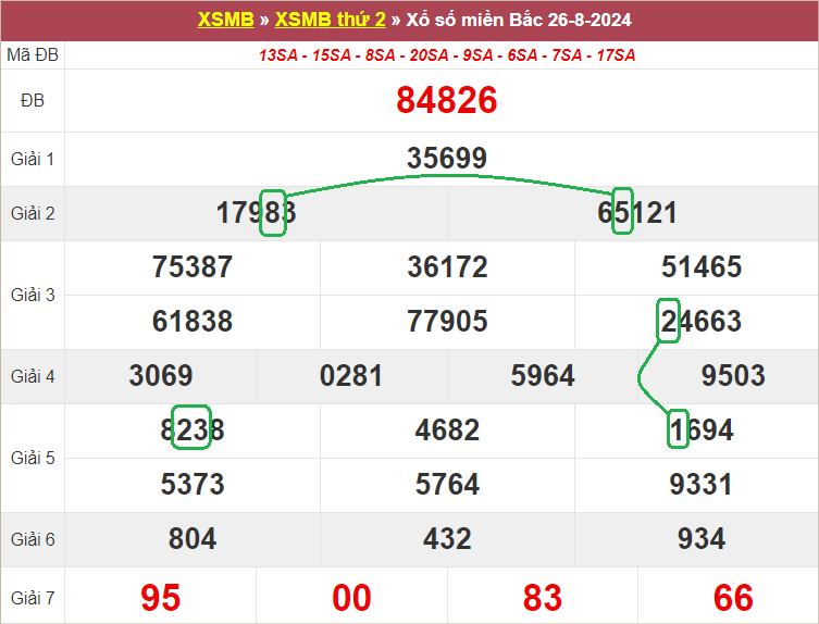Xem lại bảng KQXSMB ngày 26-8-2024 hôm qua