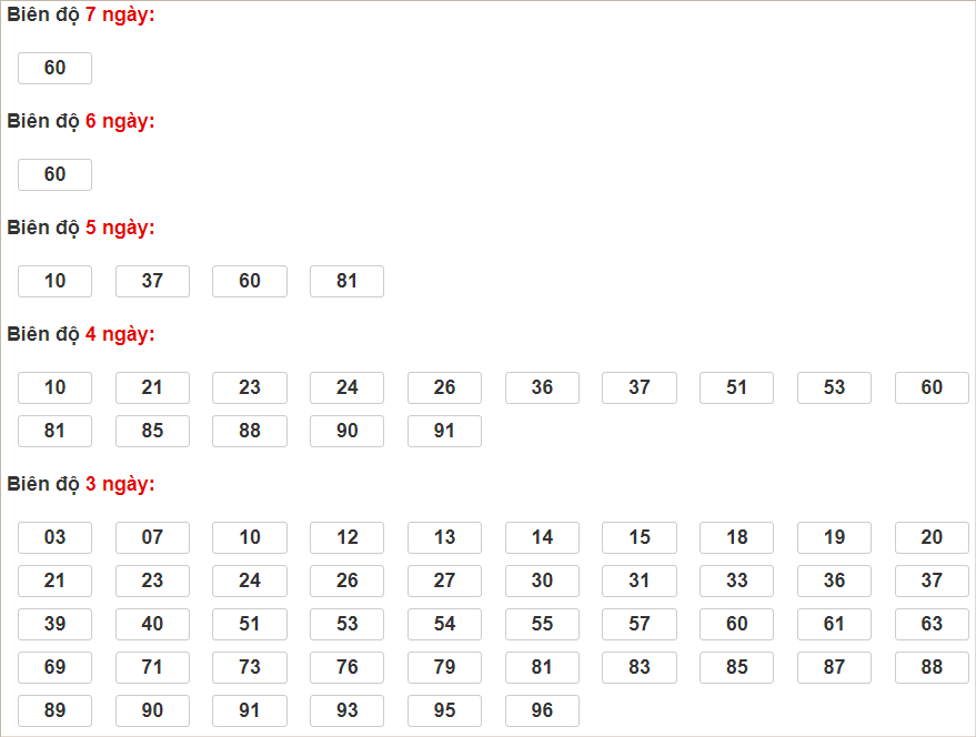 Cặp lô 45, 53, 55, 66 có độ dài 3 ngày.