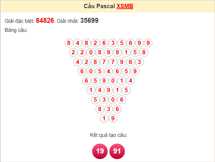 Kết quả từ soi cầu Pascale là cặp số may mắn: 19 91