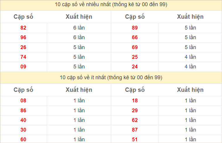 Các cặp số nóng nhất hôm nay: 49 – 96 – 39 – 09 – 19