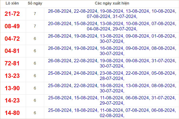 Cầu lô chạy 7 ngày qua (cầu dài nhất)