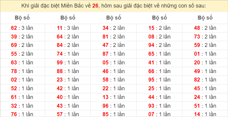 Thống kê hai số cuối giải đặc biệt miền Bắc ngày 27/8