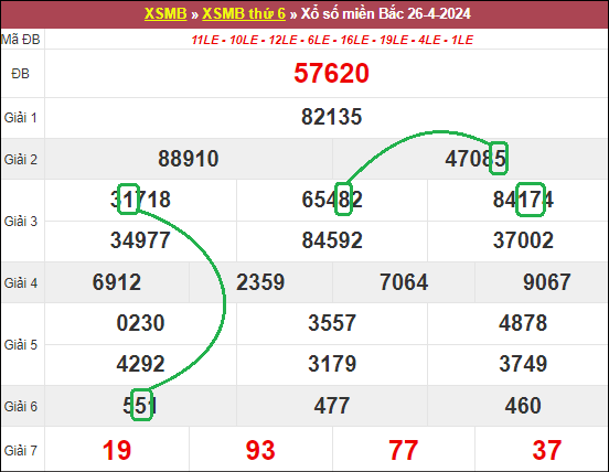 Xem lại bảng KQXSMB ngày 26/4/2024 hôm qua