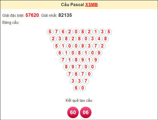 Kết quả từ soi cầu Pascale là cặp số may mắn: 06 60