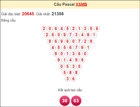 Kết quả từ soi cầu Pascale là cặp số may mắn: 36 63