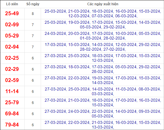 Dàn lô hôm nay miền Bắc bất bại ngày 28/3/2024