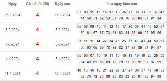 💰 Cầu lô về liên tiếp 4 kỳ trở lên: 13, 17, 19, 34, 36, 47, 69, 83, 87, 89, 94