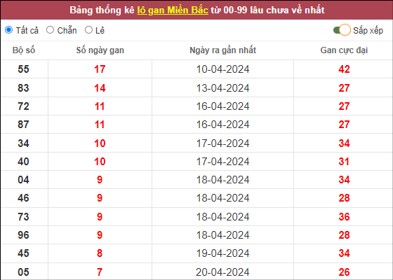 ⭐️ Lô gan XSMB lâu ra nhất: 55 – 83 – 72 – 87 – 34