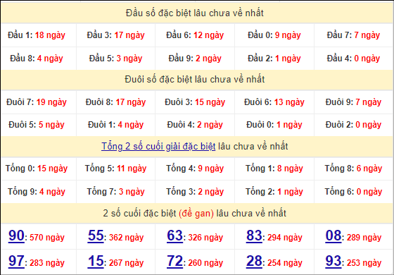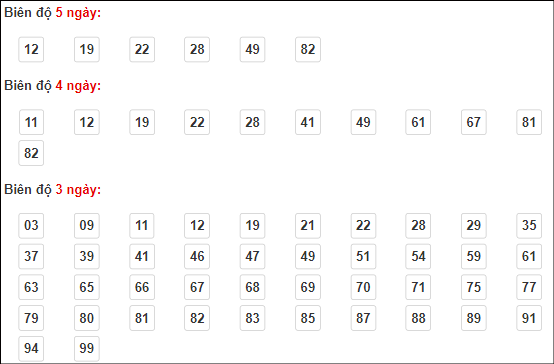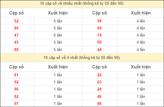 Cặp lô 13, 17, 19, 34, 36, 47, 69, 83, 87, 89, 94 có độ dài 2 ngày.