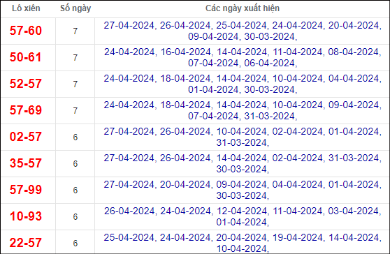 Dàn lô hôm nay miền Bắc bất bại ngày 28/4/2024