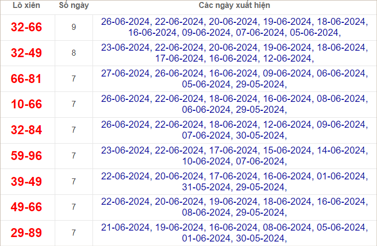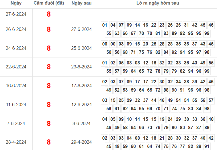 Dàn lô hôm nay miền Bắc bất bại ngày 28/6/2024