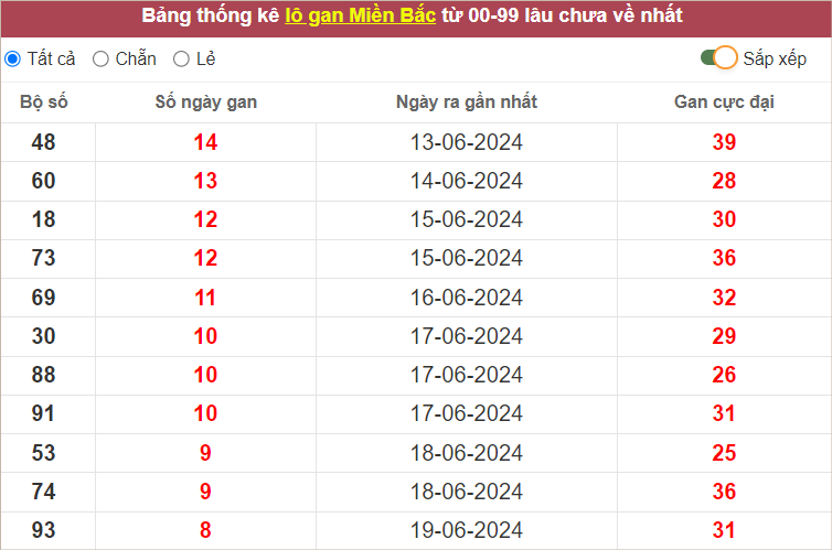 ⭐️Thống kê lô gan miền Bắc lâu ra nhất: 48 – 60 – 18 – 73 – 69