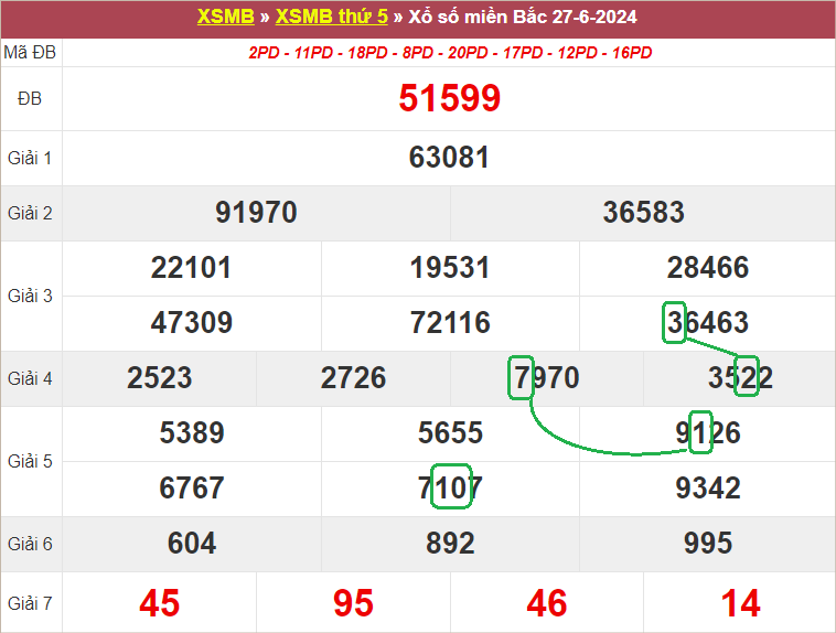 Xem lại bảng KQXSMB ngày 27-6-2024 hôm qua