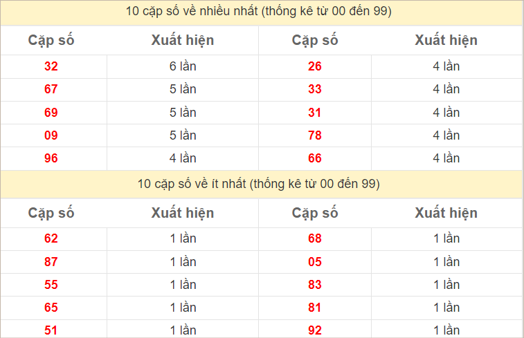 Các cặp số nóng nhất hôm nay: 59 – 25 – 56 – 29 – 54