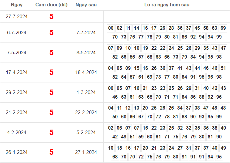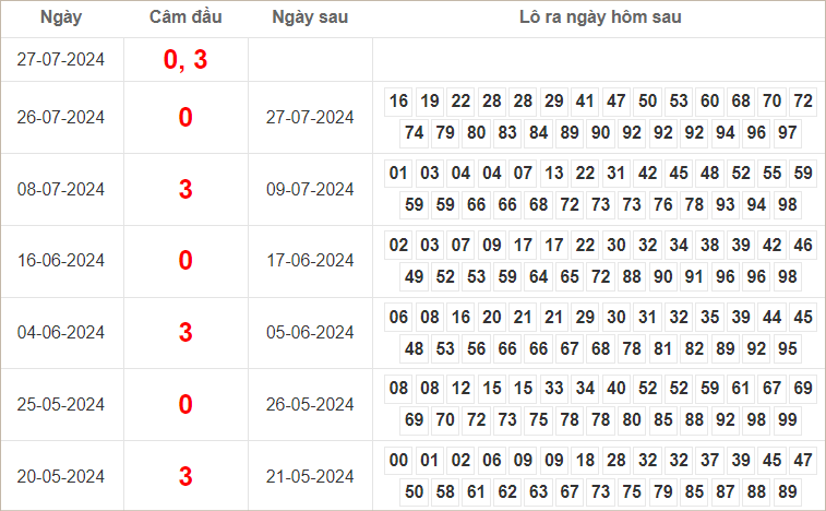 Dàn lô hôm nay miền Bắc bất bại ngày 28/7/2024