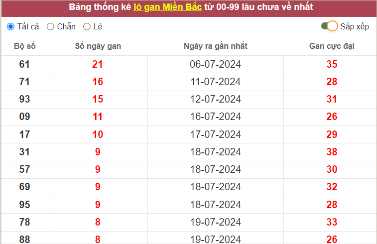 Thống kê lô tô miền Bắc hôm nay 28/7