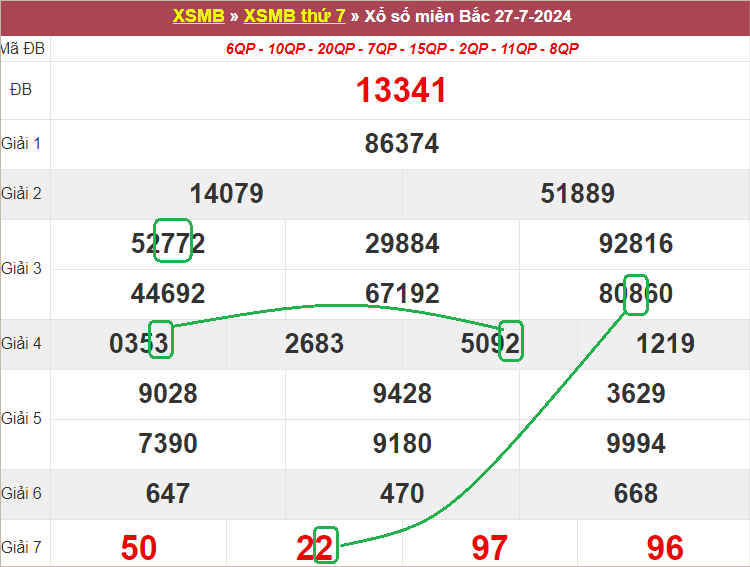 Xem lại bảng KQXSMB ngày 27-7-2024 hôm qua