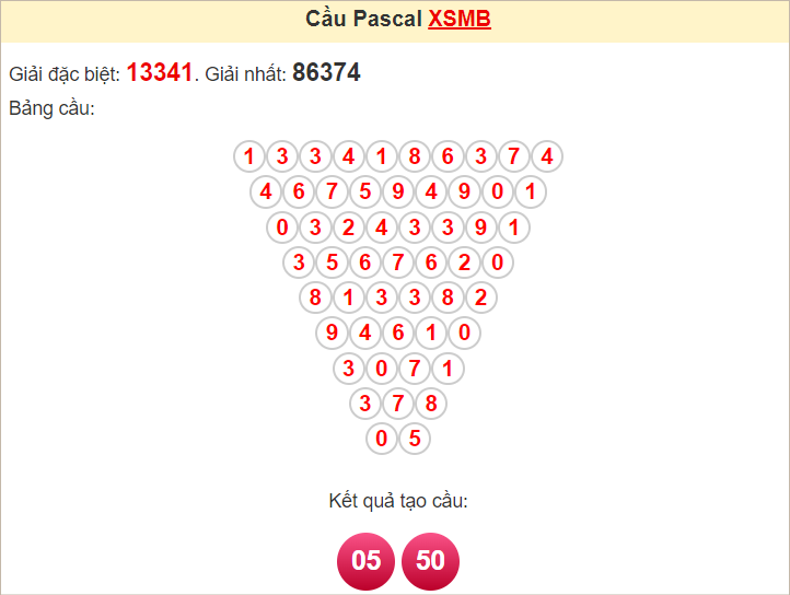 Kết quả từ soi cầu Pascale là cặp số may mắn: 05 50