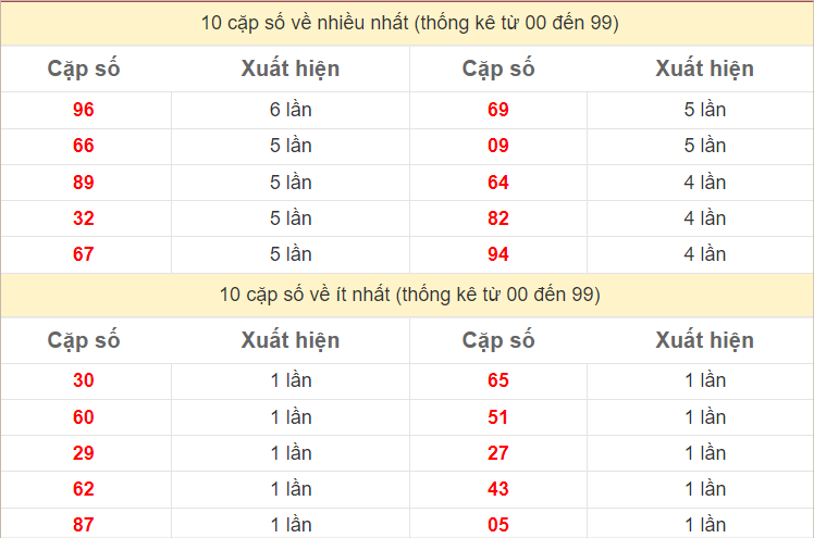 Các cặp số nóng nhất hôm nay: 97 – 92 – 59 – 89 – 10